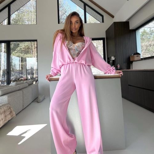 Komplet pre tých, čo milujú pohodlie aj štýl ✨ Rozšírené nohavice krásne predĺžia postavu a dodajú každému outfitu ležérnu eleganciu. Spolu s mäkkou mikinou s kapucňou vytvárajú dokonalý set na každý deň – či už ideš do mesta, na kávu alebo len chceš vyzerať dobre aj doma.