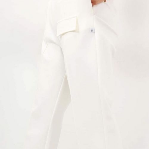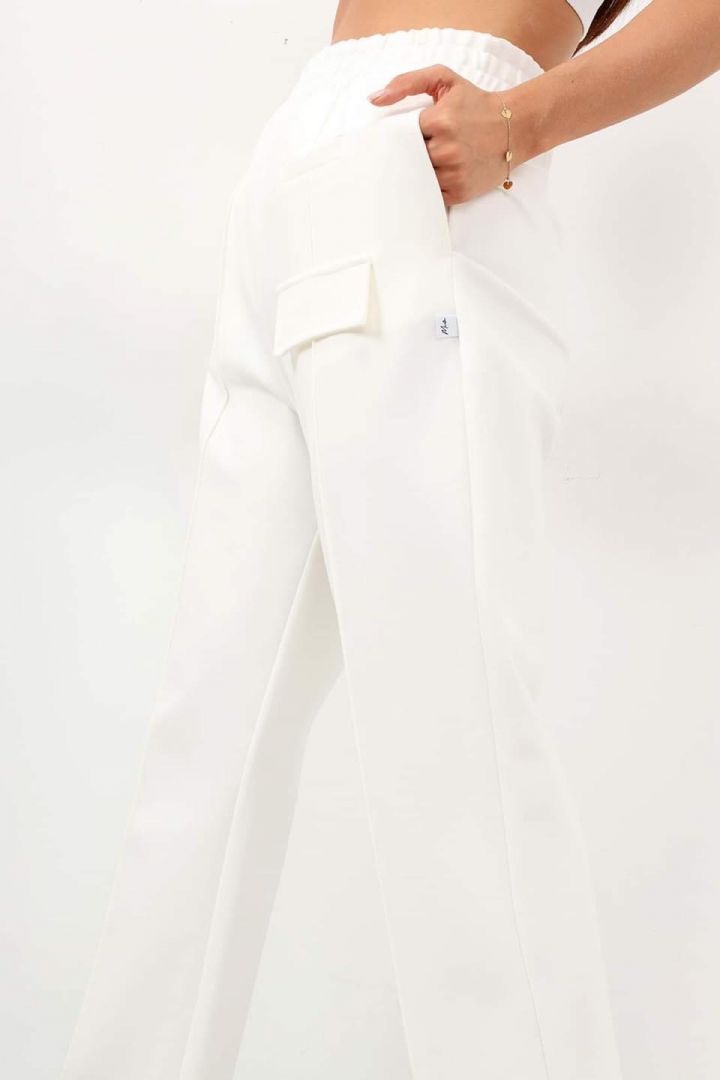 Nohavice ALOA vyrobené z veľmi príjemného materiálu. Nohavice s vyšším pásom a voľným strihom. Nohavice sú na gumičku. V prednej časti sú doplnené všitými pukmi.