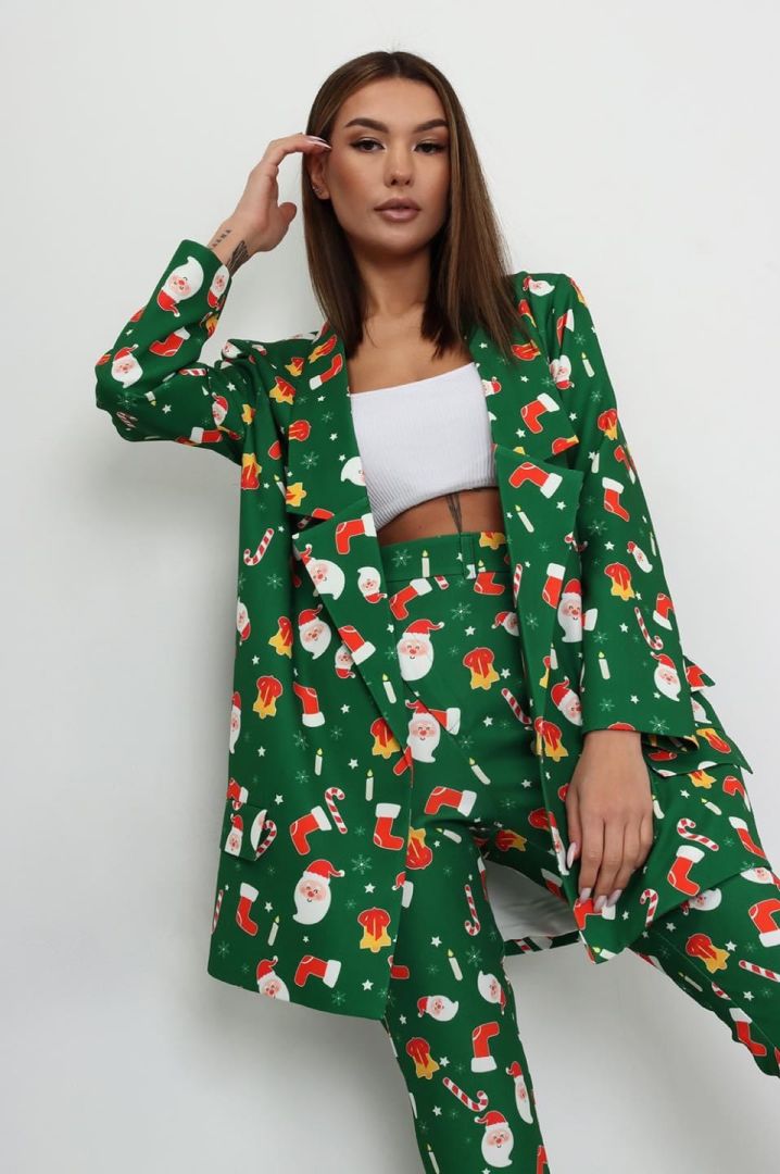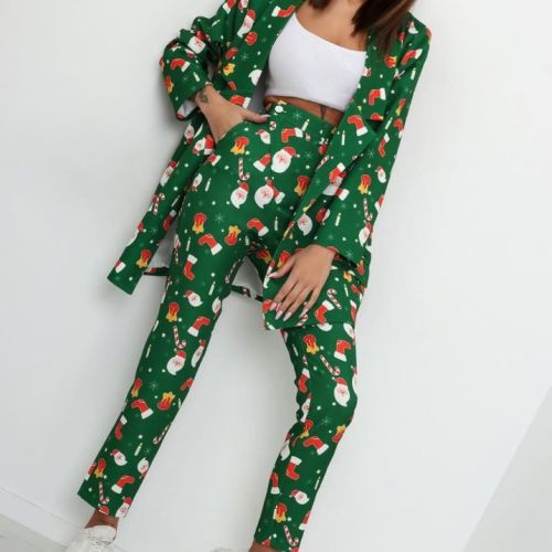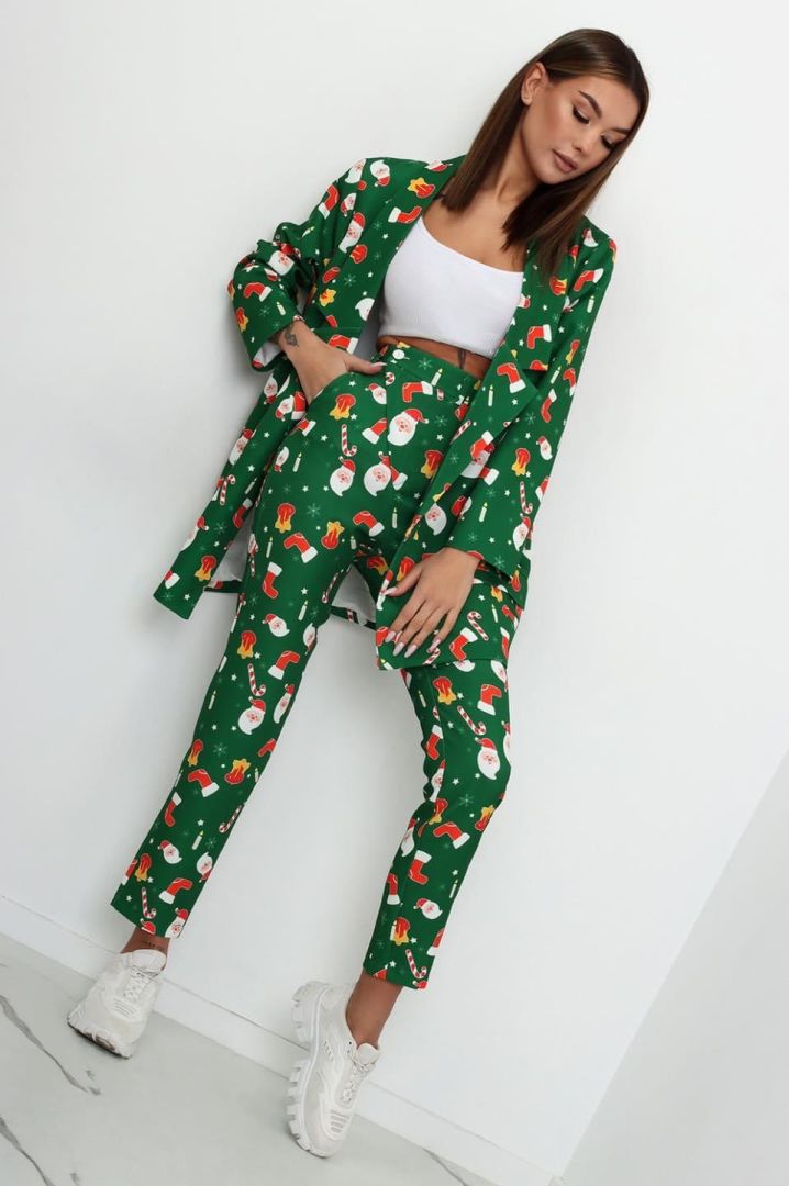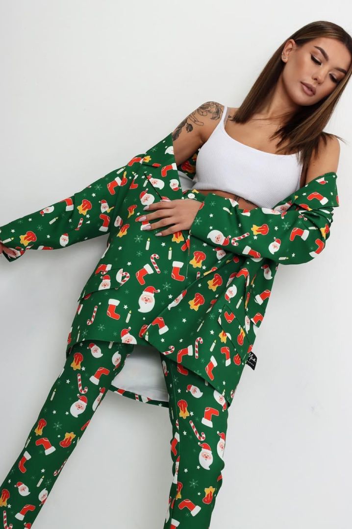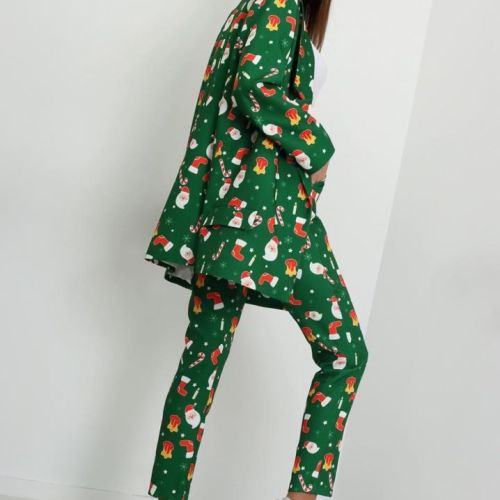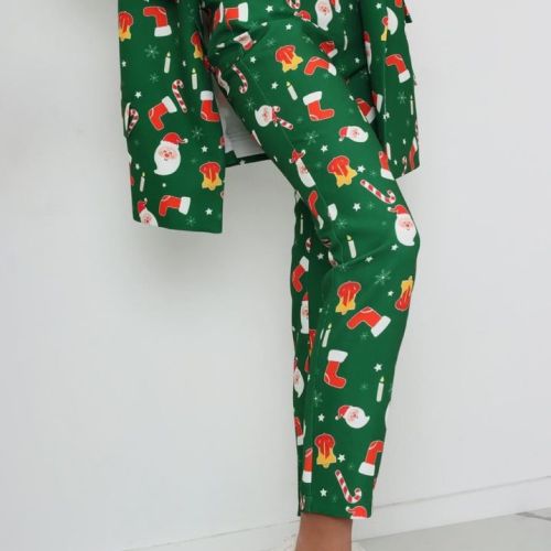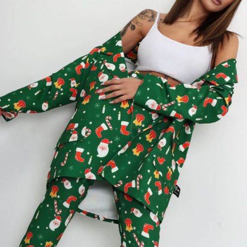 Komplety Gingerbread sú neoddeliteľnou súčasťou Vianočného obdobia a preto sú must have do každého šatníka. Komplet je vyrobený z príjemného, mäkkého materiálu a je veľmi kvalitne spracovaný. Dĺžka saka siaha pod bedrá, má dlhý rukáv. Nohavice sú úzkeho strihu a zapínajú sa na gombík, nohavice zdobia aj vrecká.