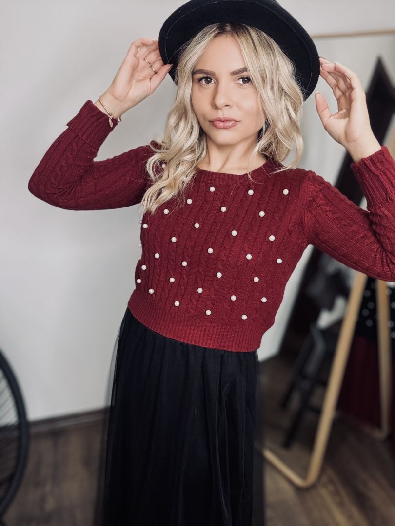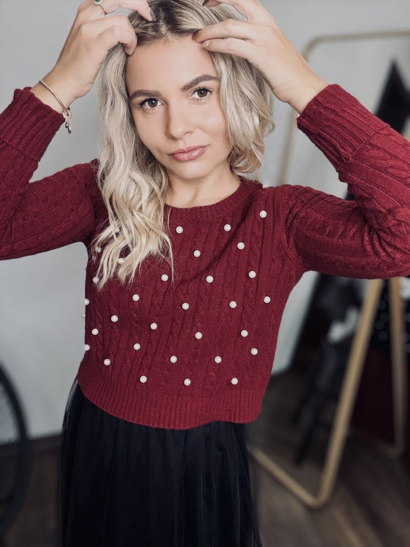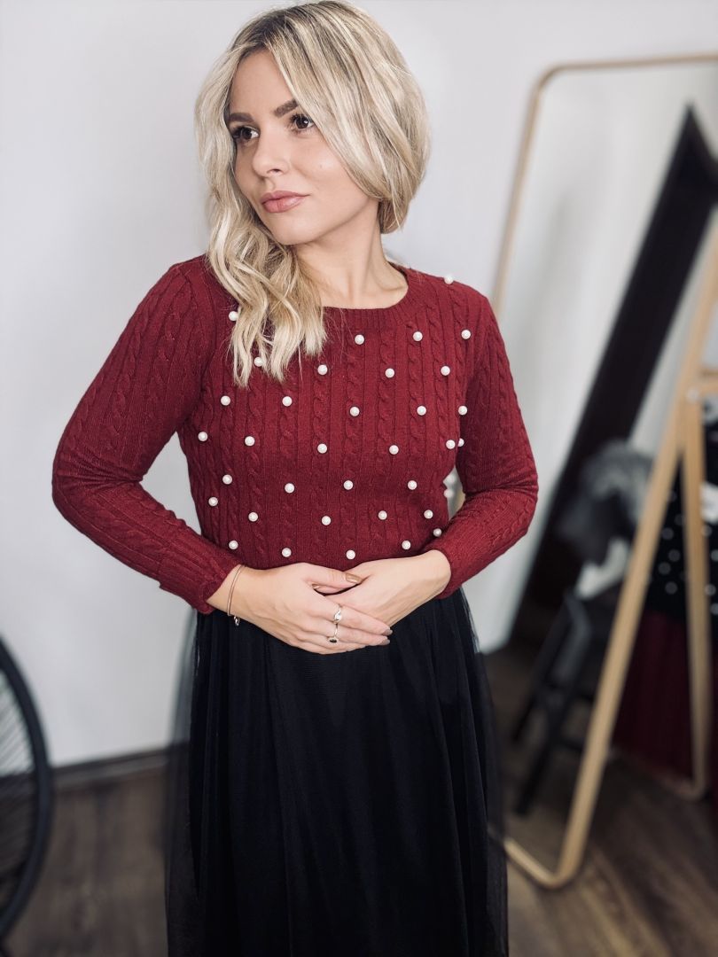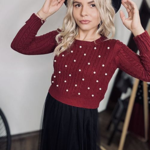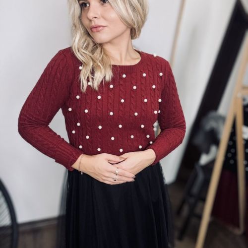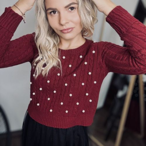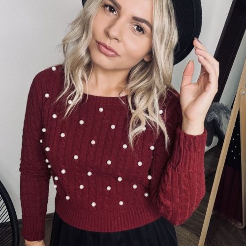 Fialový sveter s perličkami je dokonalý kúsok pre milovníkov elegantnej módy s jemným nádychom luxusu. Na prednej strane sú perličky jemne našité tak, aby vytvárali nenápadný, no efektný vzor – každý detail je dokonale prepracovaný. Materiál je príjemný na dotyk, mäkký a pružný, takže sa pohodlne prispôsobí postave a zabezpečí pohodlie po celý deň. Ideálny na elegantné príležitosti, večere alebo aj bežný deň, keď chcete vyzerať štýlovo a jedinečne. Tento sveter je jedinečným kúskom, ktorý zaručene upúta pozornosť!