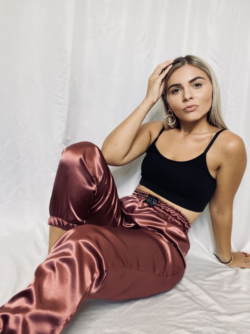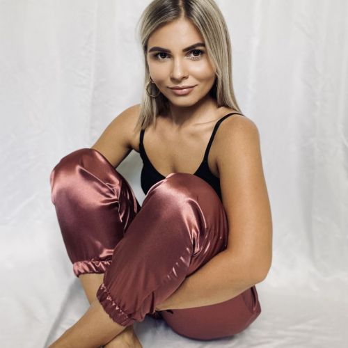 Saténové nohavice By Veri sú ručne šité našou šikovnou krajčírkou. Sú ušité z príjemného materiálu a dozdobené našou nášivkou. Nohavice sú na gumičku a taktiež gumička sa nachádza aj na zakončení nohavíc.