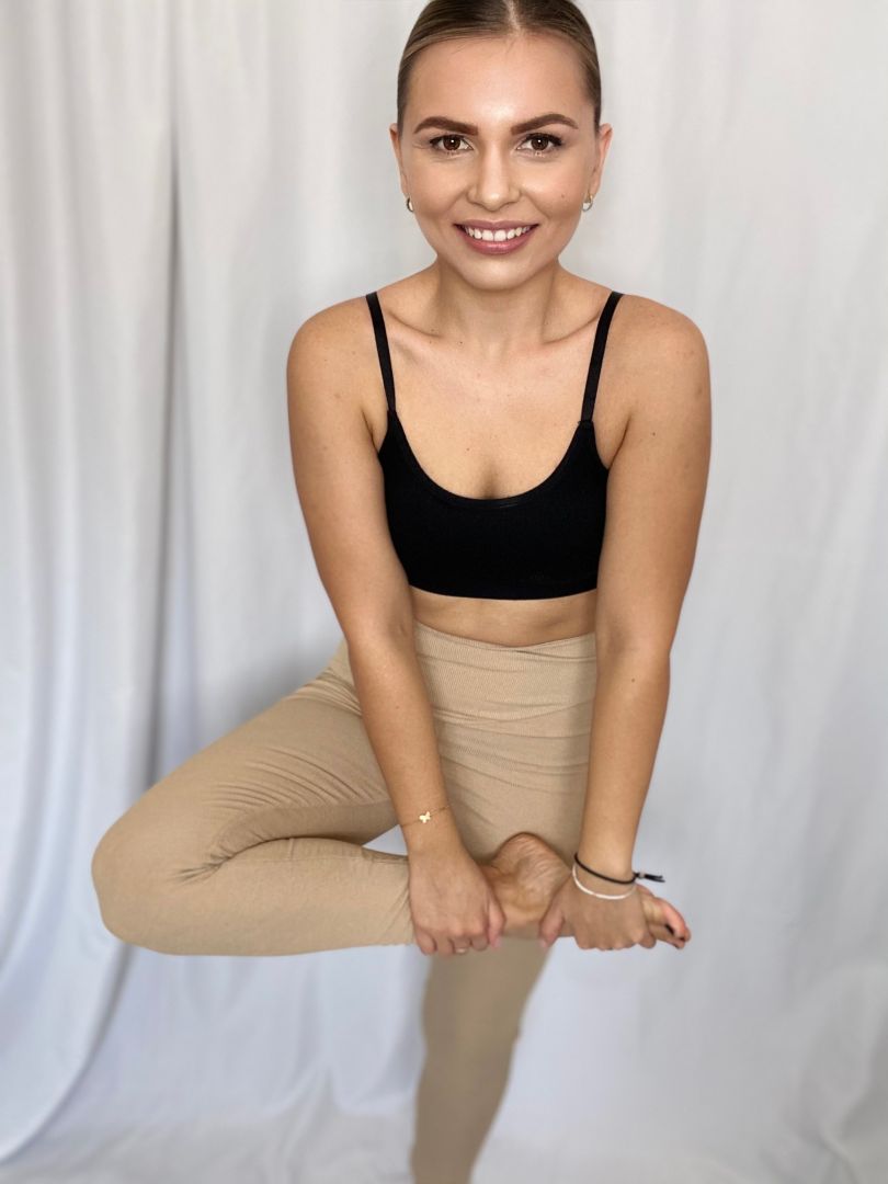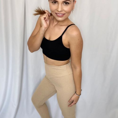 Tieto kvalitne spracované legíny, vyrobené z príjemného mikrovlákna, sú nádherným doplnkom do šatníka každej aktívnej ženy. Legíny majú vysoký pás, vďaka ktorému skvele držia a vynikajúco tvarujú postavu. Sú nesmierne pohodlné a vďaka špeciálnemu materiálu sú ideálne na cvičenie, ale aj na bežné nosenie. Ich béžová farba dodáva sviežosť a originalitu každému outfitu.
