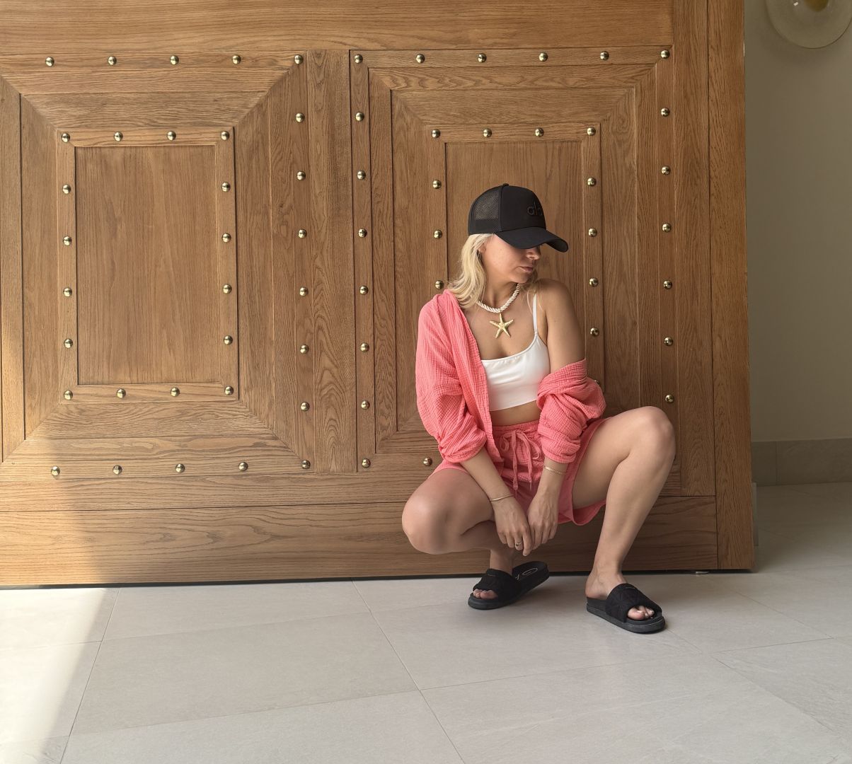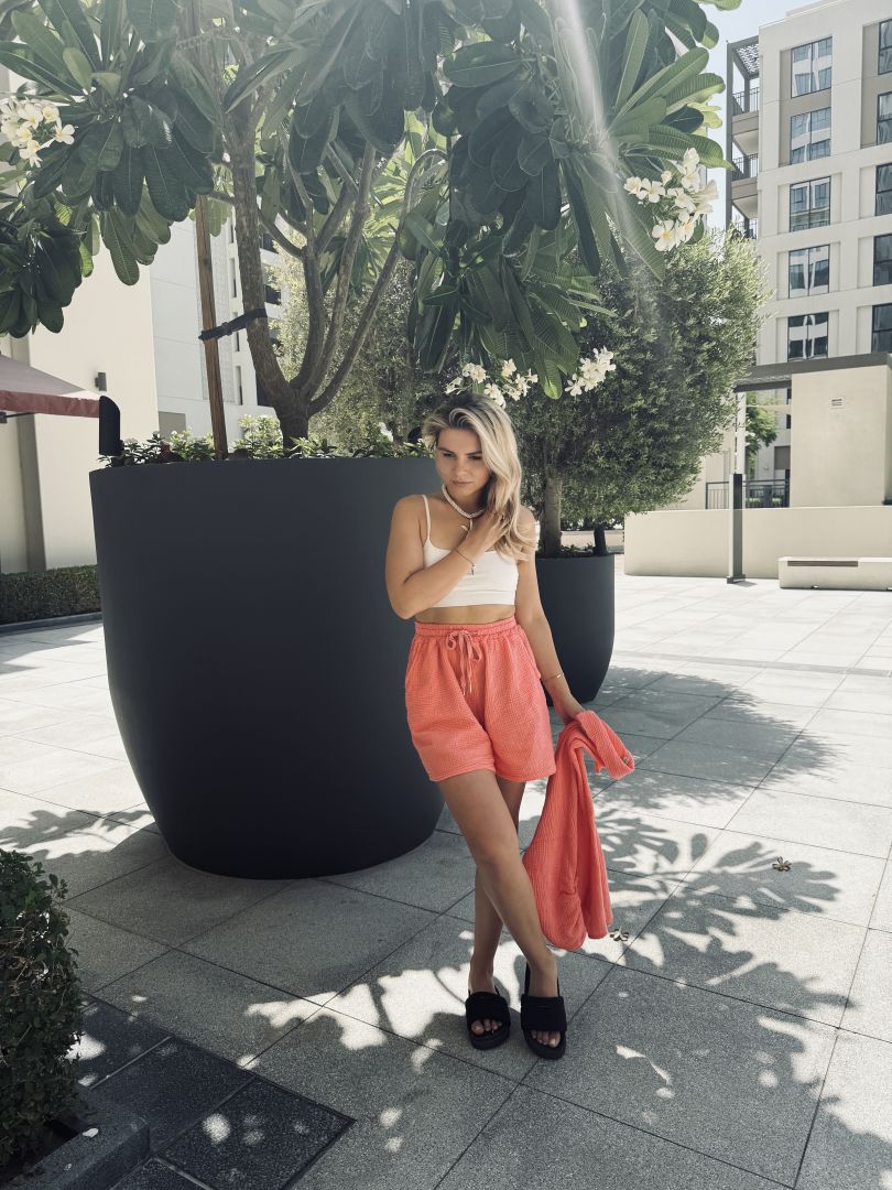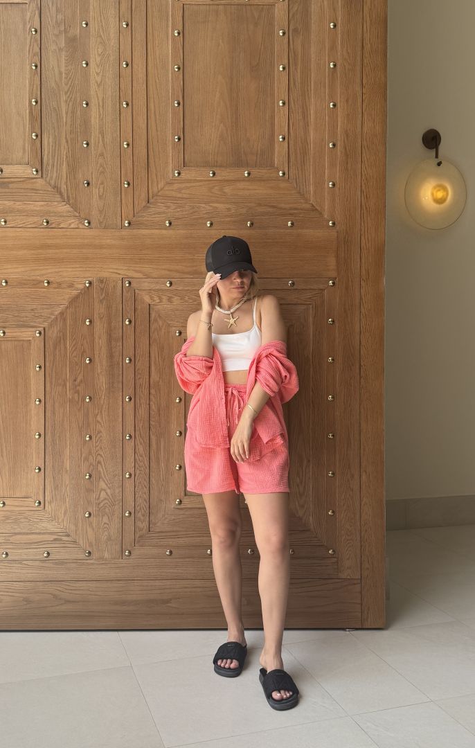 Letný komplet je ideálny pre teplé dni – ľahký, vzdušný a štýlový.Skladá sa z krátkeho topu a šortiek. Pohodlný strih a príjemný materiál zaručujú maximálny komfort a slobodu pohybu. Perfektný na dovolenky, prechádzky mestom aj letné večery.