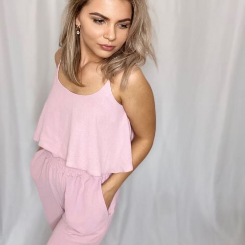 Tento letný púdrovo ružový overal je ideálnym kúskom pre horúce letné dni. Vyrobený z ľahkého a priedušného materiálu, poskytuje maximálny komfort a slobodu pohybu. Jeho elegantný a minimalistický dizajn je skvelý pre každú príležitosť, či už ide o neformálne stretnutie, prechádzku po pláži alebo letnú párty.