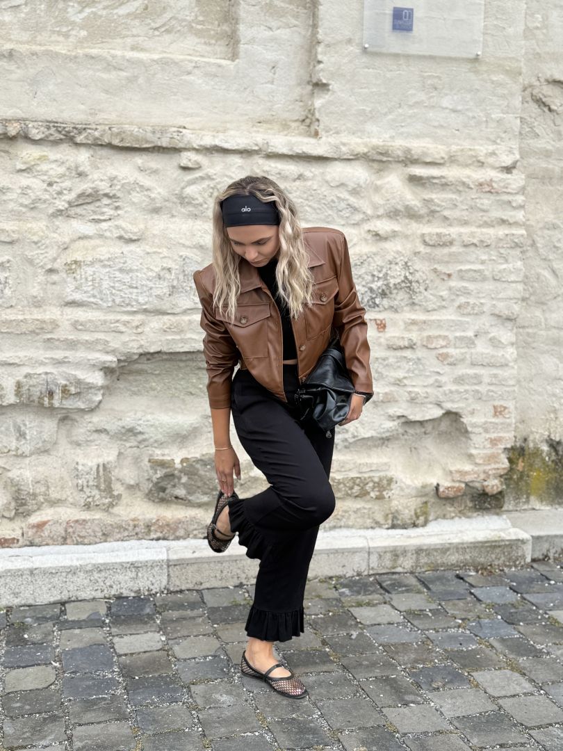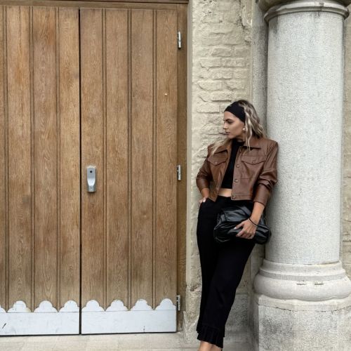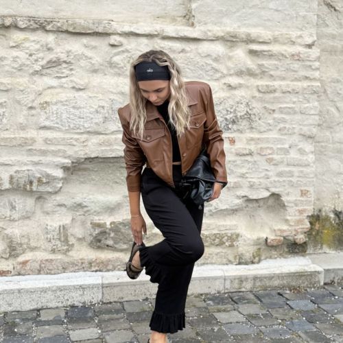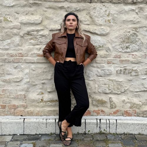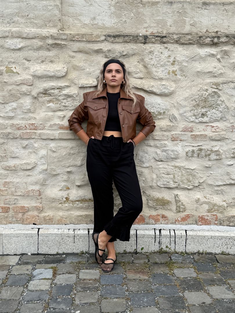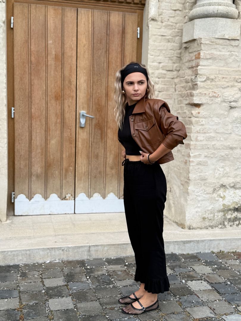 Skrátené rozšírené nohavice. V páse je gumička a šnúrka.