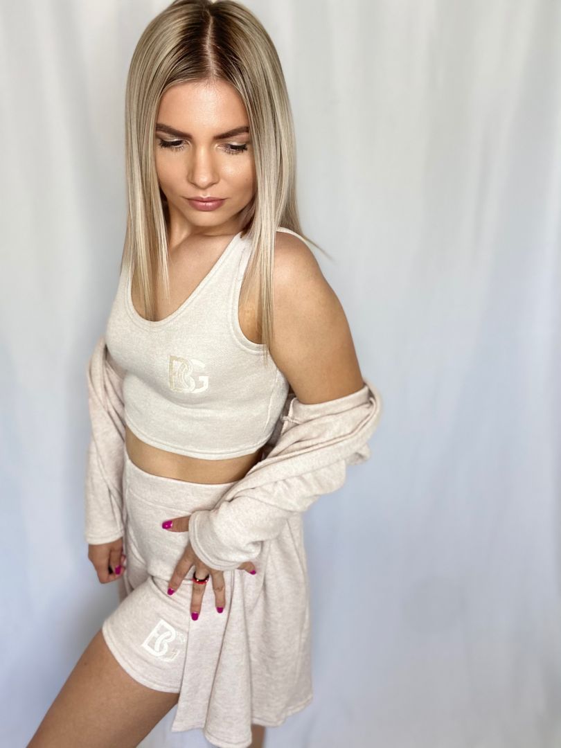 Predstavujeme vám nás exkluzívny komplet, ktorý je perfektným spoločníkom pre každú príležitosť počas letných dní. Komplet sa skladá z topu, pohodlných šortiek a svetríku. Top je skrátený a šortky majú pružný pás pre dokonalé prispôsobenie každej postave. Kúpte si náš komplet ešte dnes a zažite kombináciu pohodlia, štýlu a letnej sviežosti.